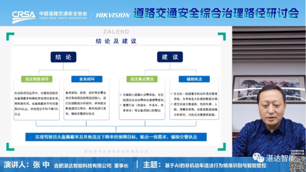 结论与建议结论一:违法智能劝导效果显著。在实际项目应用中,对提高驾驶员头盔佩戴率和降低其他违法发生率,有明显作用,头盔佩戴率平均可提高20%以上,其他违法平均下降15%以上。结论二:有必要进行业务闭环。重点学校、医院、政府等企事业单位等地周边现有监控接入,进行后端数据分析研判。并将相关数据通过文明办、教体局进行发布,辅助交警更好执法。建议一:开展重点整治。在此经验的基础之上,我们也建议进行重点违法的重点整治,在关键路口部署AI劝导系统,可实现违法自动劝导和交通诱导发布。重要行业(快递车、外卖车、共享单车)等及重点路口的整治。